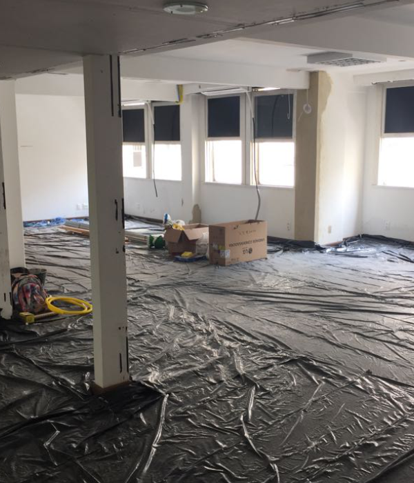 Construção de centro comercial Construção de centro comercial (600 m2) em Belford Roxo. Execução de divisórias em drywall e instalações elétricas e hidráulicas.